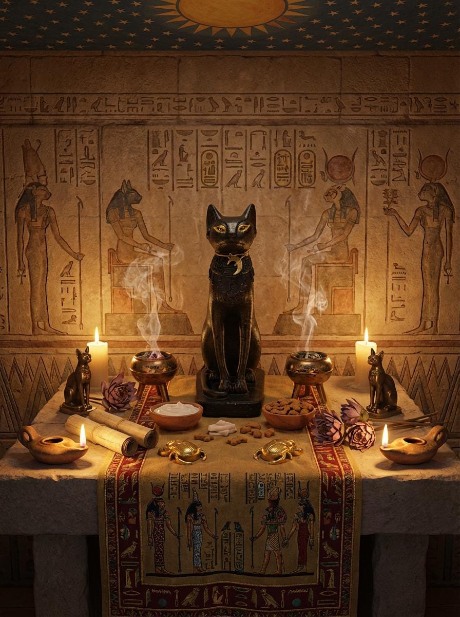 This Bast statue is made to order and comes in two colors. The statue of the Goddess Bast is 5 and a half inches tall and made of plaster & concrete. She is pretty heavy duty and comes with a moon charm around her neck. I picked the moon charm because she was a Goddess of the moon. I very much admire cats and Bast so if you do also this is another nice thing to put up on the altar.