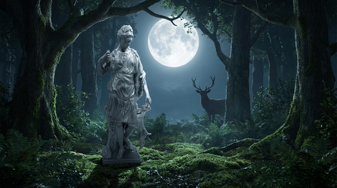Artemis is the goddess of wild animals, the hunt, vegetation, chastity, and childbirth.