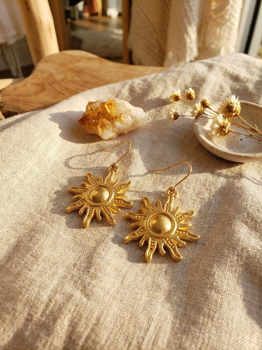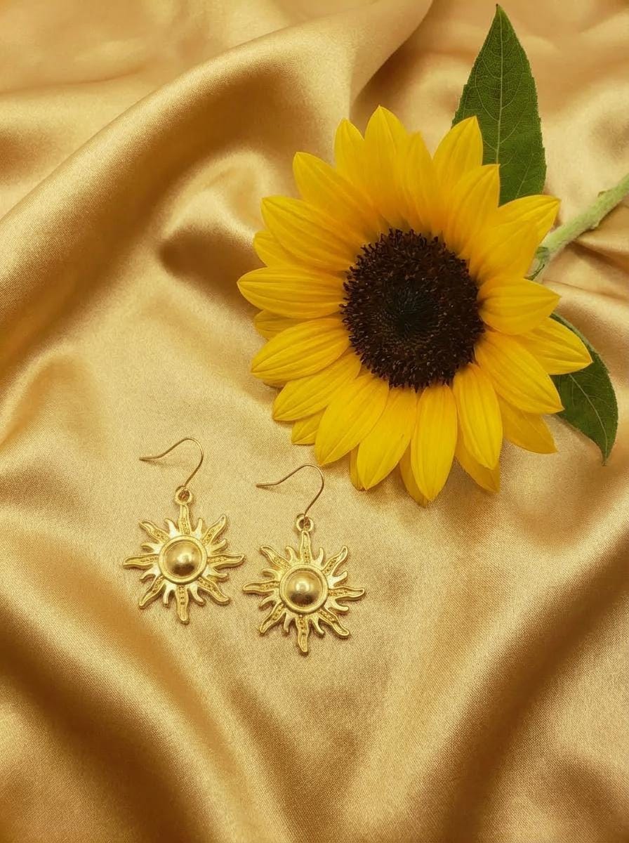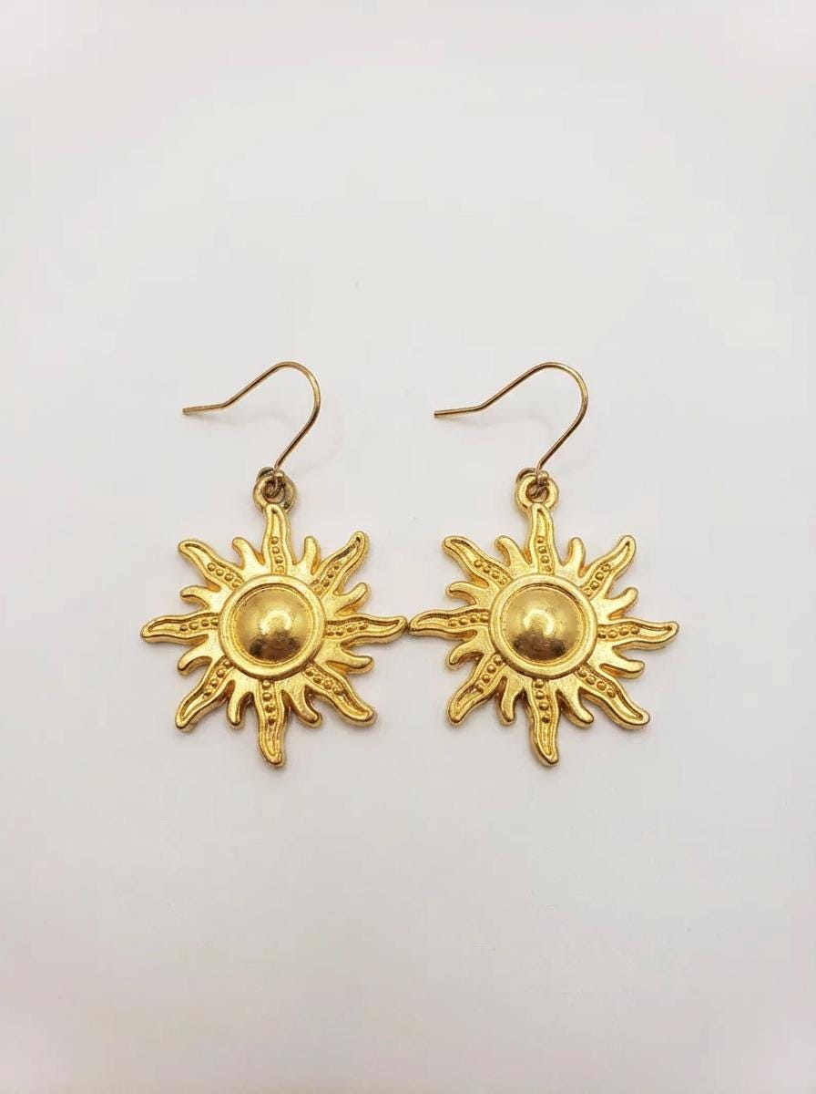 A pair of sun dangle earrings to go along with your Apollo necklace.
