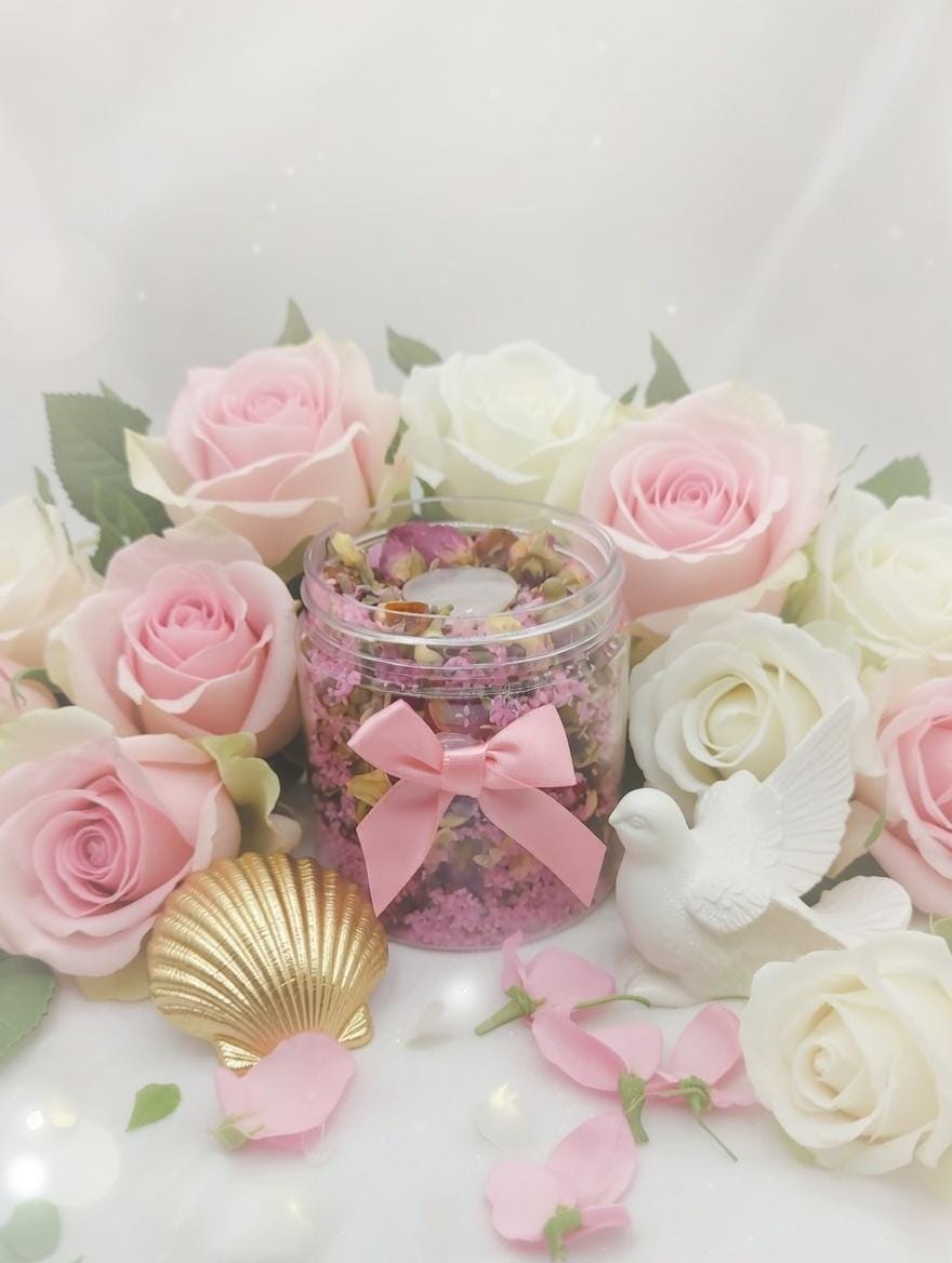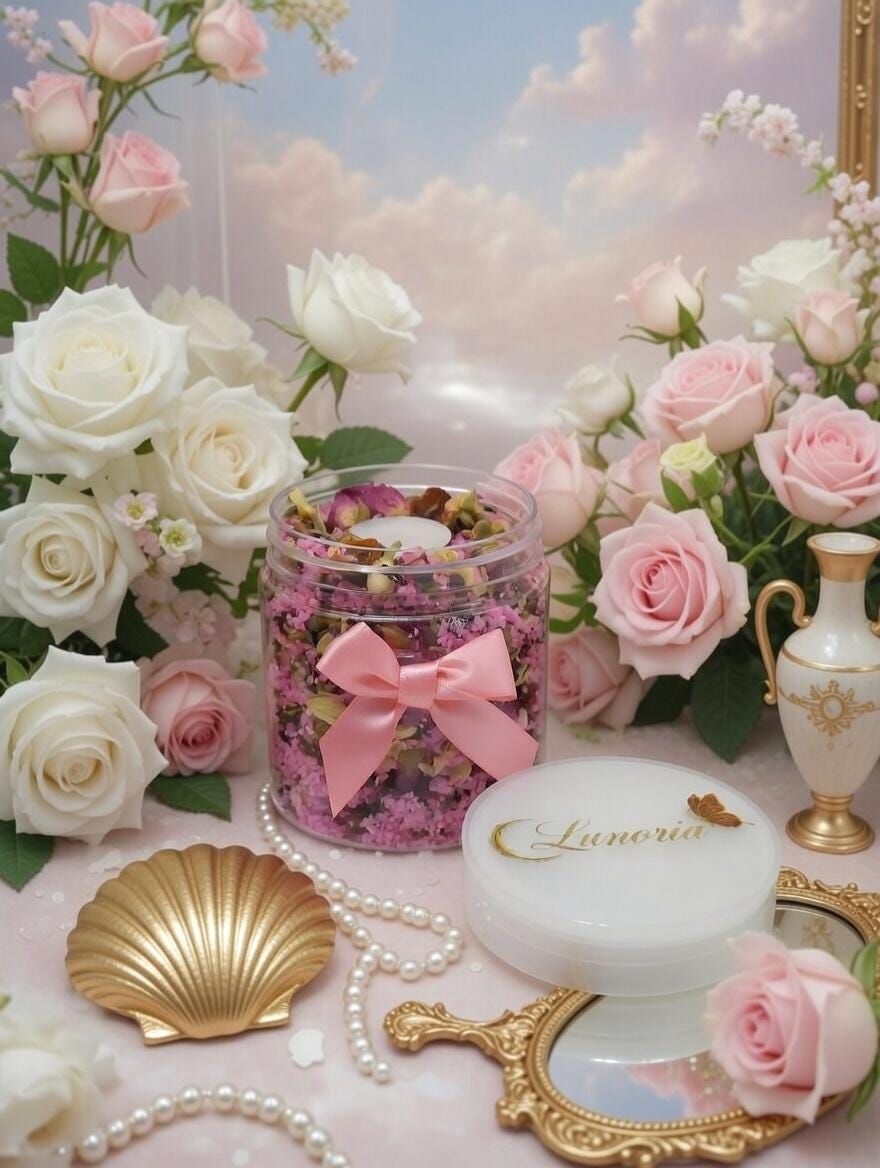 Prepare Your Space: Gather all your ingredients and set up your bathing area. Light the candles and arrange the roses and seashells around the tub to create a serene atmosphere.