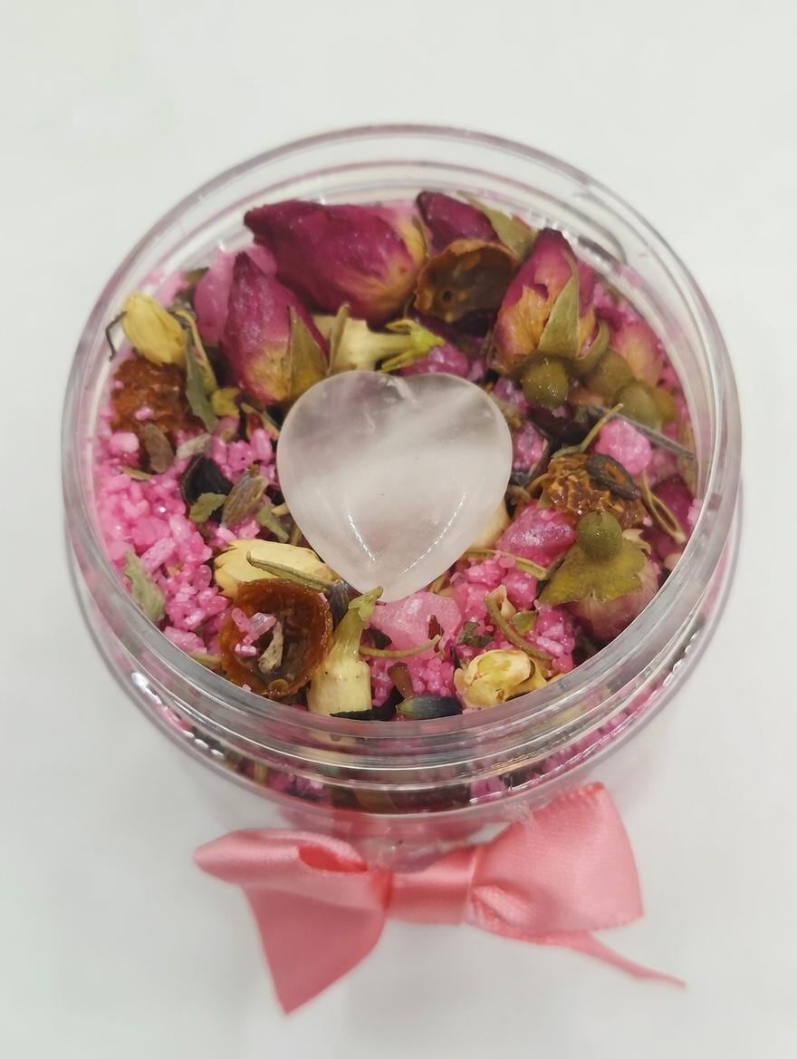 This 4 OZ ritual bath is perfect for you or for an offering and comes with a rose quartz heart! This can also be used as a love drawing bath or even self-love.