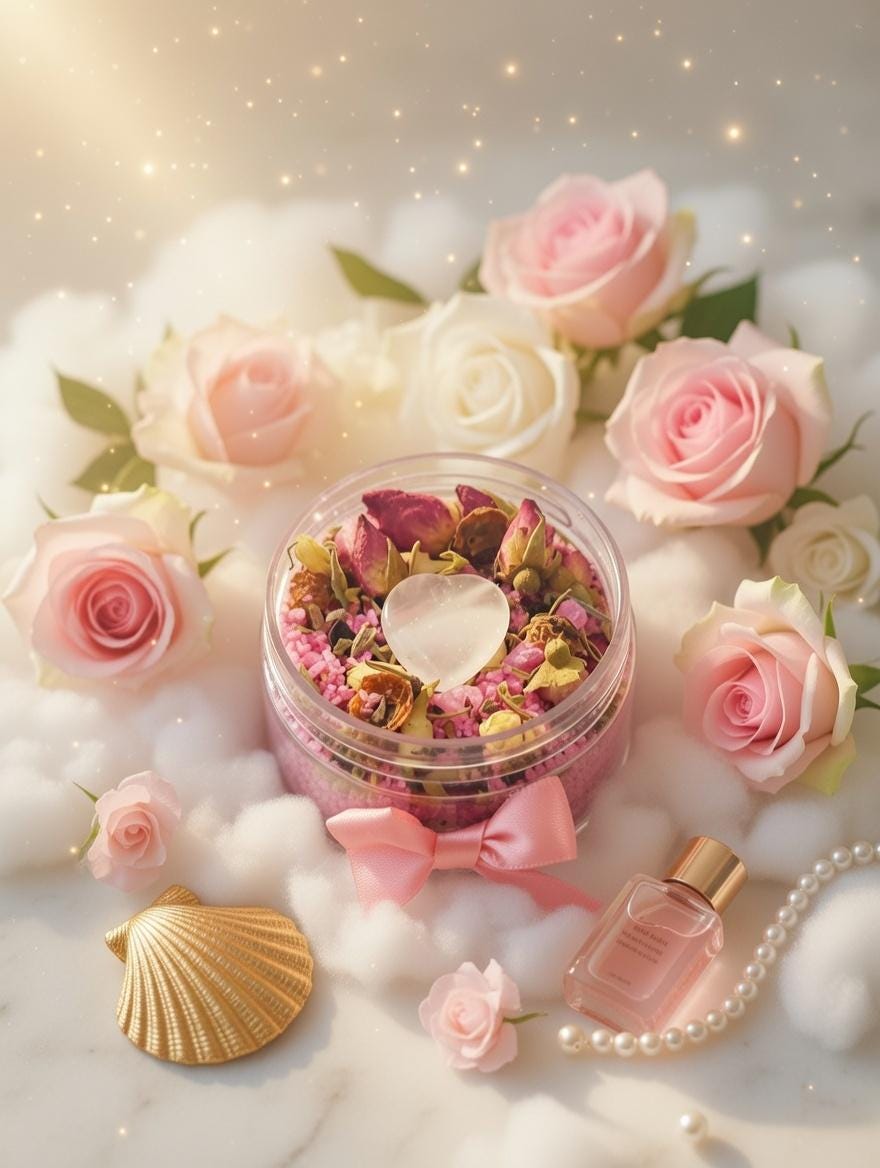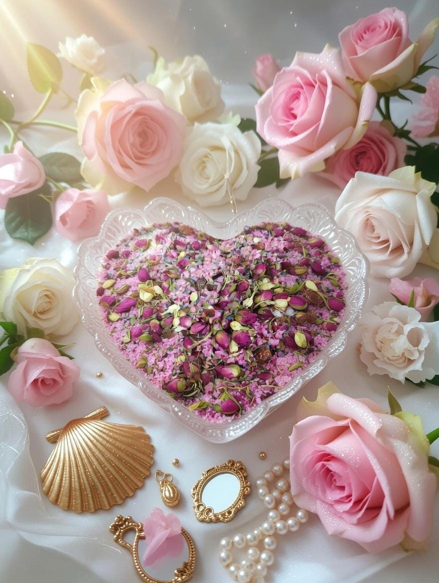 An Aphrodite bath is a ritual bath that incorporates various elements associated with the goddess of love and beauty, Aphrodite. This bath is intended to enhance one's inner beauty, attract love, and promote self-love and confidence. It is often performed as a form of self-care, especially around times of romantic significance, such as Valentine's Day.