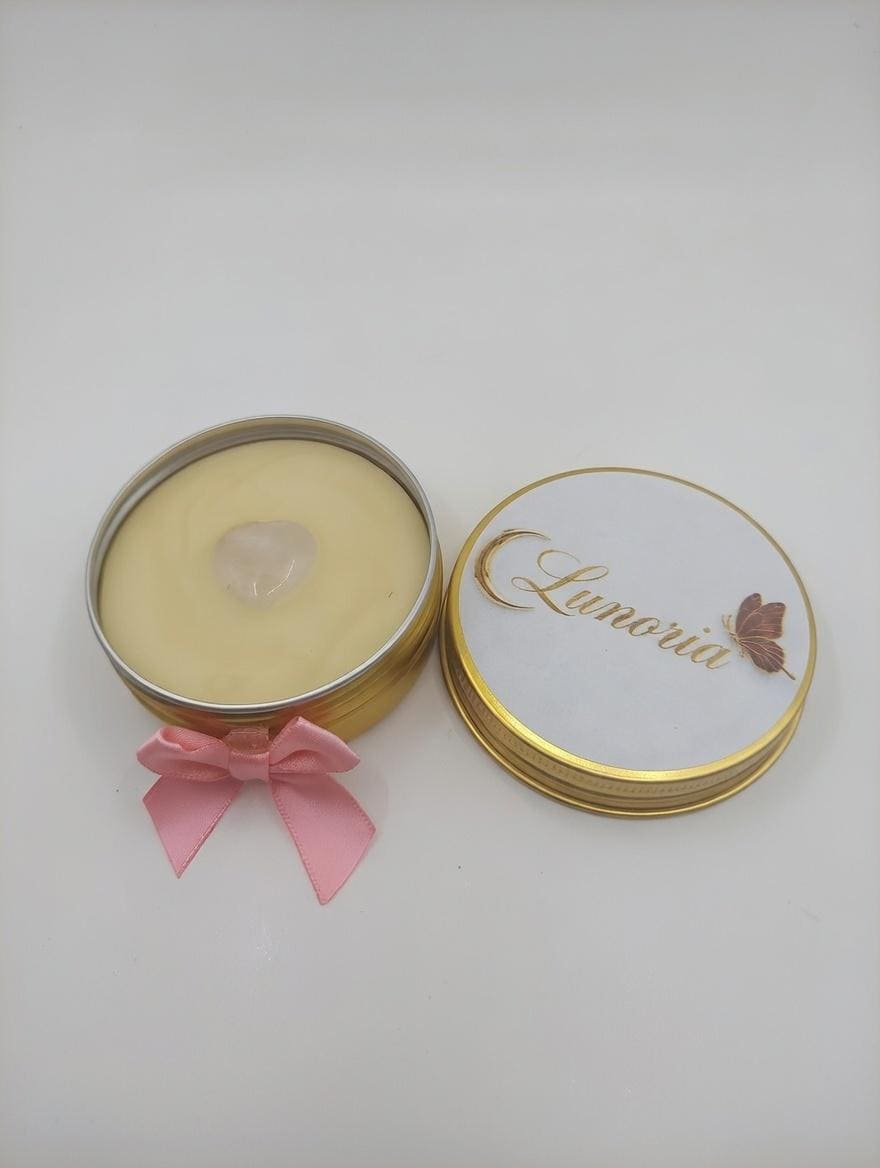 Full Ingredients: Butyrospermum Parkii (Shea) Butter, Cera Alba (Beeswax), Rosa Damascena (Rose) Flower Oil, Jasminum Officinale (Jasmine) Extract, Rosmarinus Officinalis (Rosemary) Leaf Oil, Vanilla Planifolia Fruit Oil, Cananga Odorata (Ylang Ylang) Flower Oil, Tocopherol (Vitamin E), Phthalate-Free Fragrance (White Musk), Rose Quartz, Olive oil